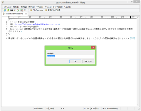 ファイルを読み込み、独自のコマンドコードを実行します。例えばファイルをコンパイルしたり、構文チェックを行うことができます。